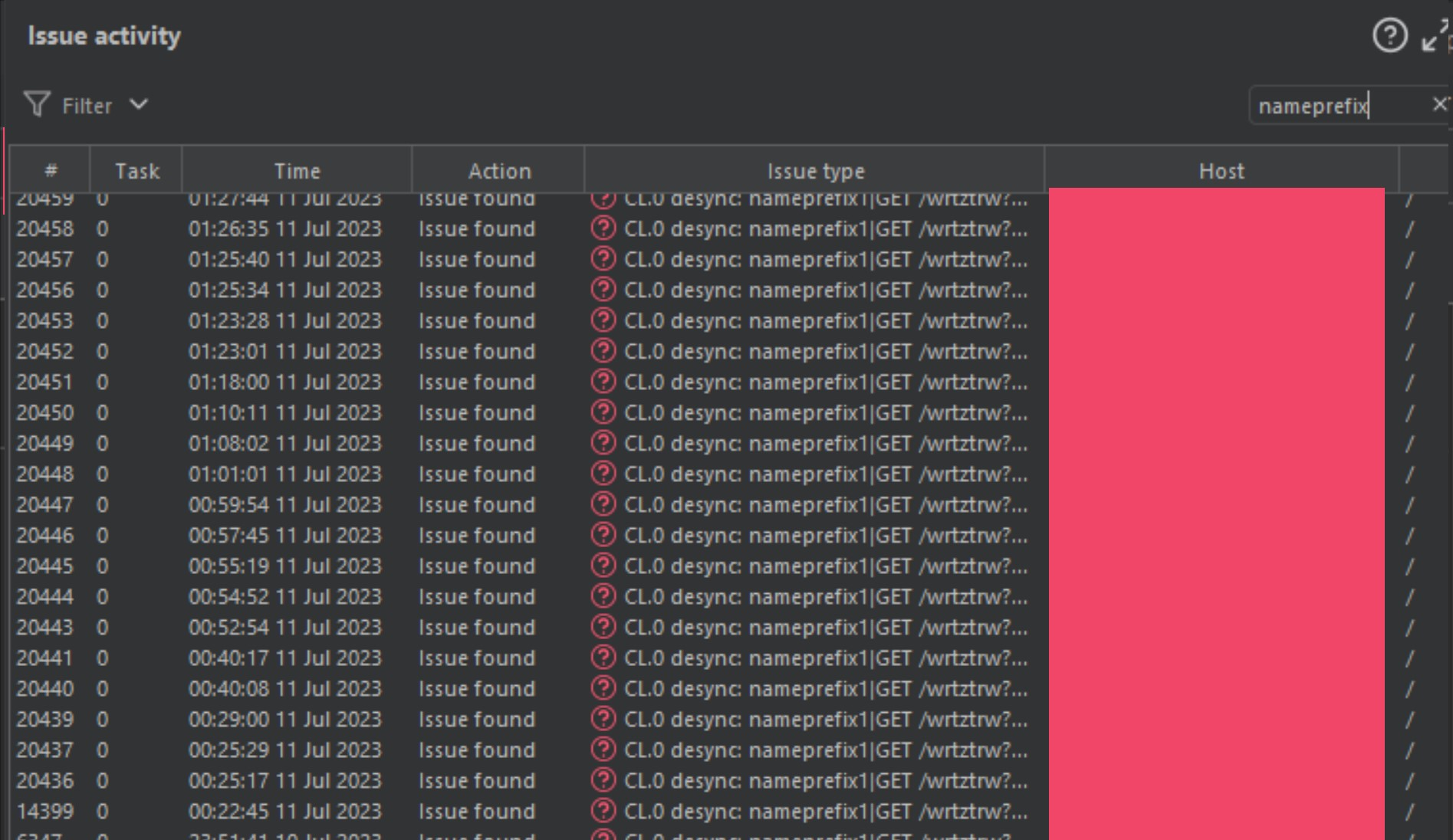 I was left with 1000's of domains, so I threw them into Burp-Suite, and started running scans on the different malformed content-length smuggle gadgets available in the HTTP Smuggle tool, and about 24 hours later, my Burp-Suite instance was lit like a Christmas tree.
