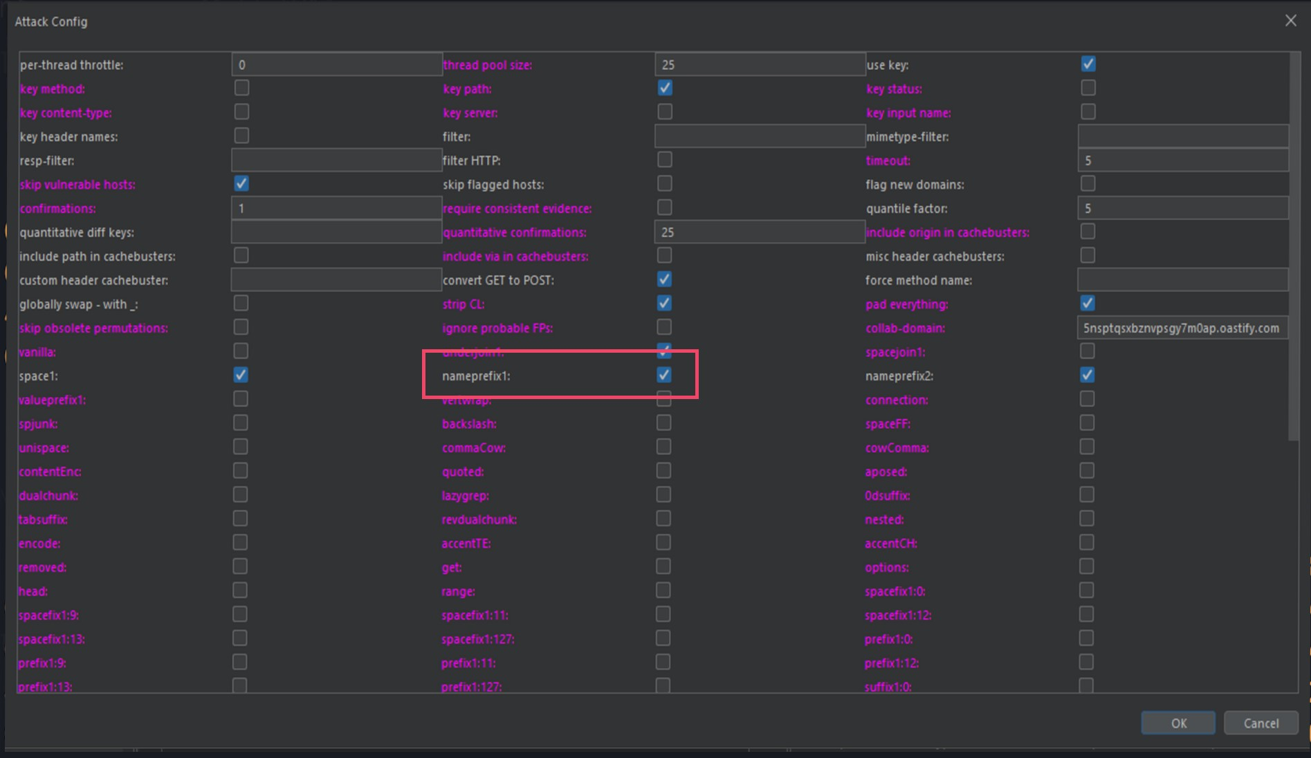 To follow along, I am scanning targets with the CL.0 gadget nameprefix1 found in the following form within HTTP Smuggler bApp under CL.0.